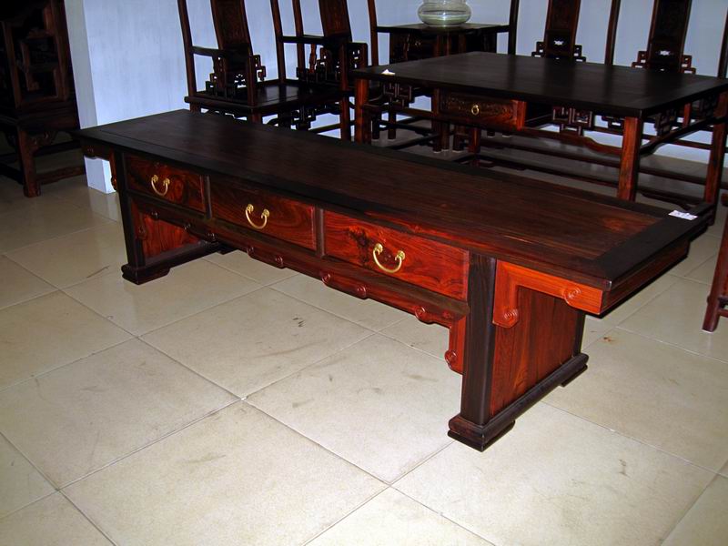 木材的处理:因为本人一直反对名贵木材进行蒸煮工艺.那样会煮死了木材.而名贵木材之所以名贵.我认为就是在于木材本身的生命力.我们每天看着它不同的变化.感受着它在岁月中慢慢得成熟.稳定.和自己一起慢慢的变老.这是一种乐趣.也是爱好者的追求吧.所以在木材的处理中我们一直都是风干处理.所以家具在使用中会有一定的收宿和开一点小裂是正常的现象.但是请放心.我们工厂承诺给我们的客户终生免费保养.