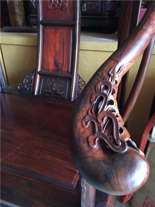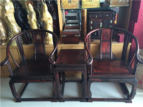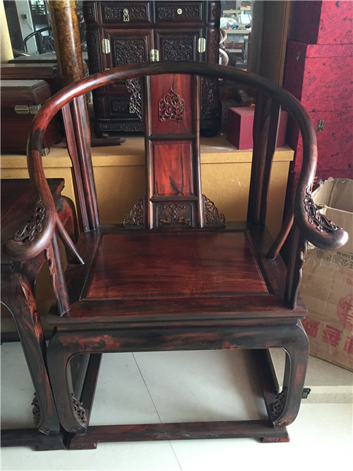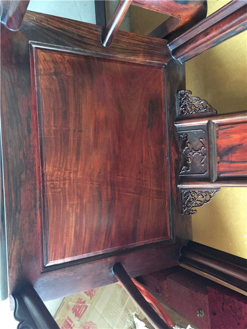 - 大红酸枝全独板皇宫椅三件套,福建仙游度尾厂家自产自销,第一手质量保证。