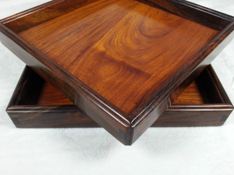 大红酸枝正方干茶盘一对