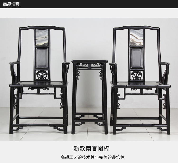 南官帽椅:回纹雕花,云石镶嵌,稳重大气