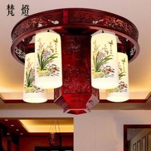梵灯简约吸顶灯实木陶瓷艺术五彩简约瓷吸顶灯可换青花瓷吸顶灯